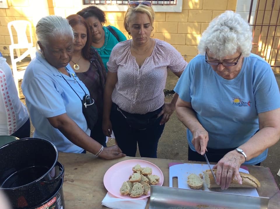 Slicing bread made with a solar oven. Photos by Solar Oven Partners (SOP) volunteers.