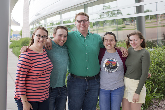 2018 interns: (Left to right) Chelsea Schmeling, Luke Wodahl, Thanael Certa-Werner, Natasha Letcher, Synnova Geranen. Photo by jlynn studio.