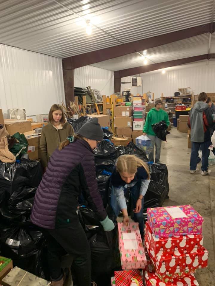 Volunteers prepare Shoebox Christmas gifts at Spirit Lake Ministry. Dakotas Conference file photo.